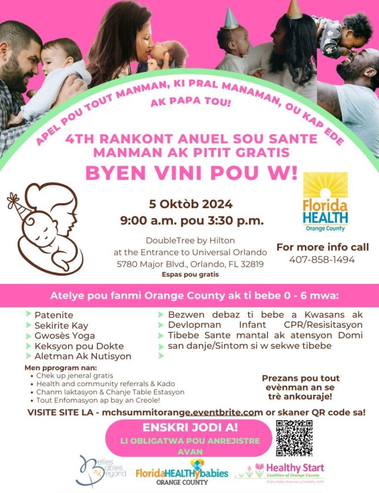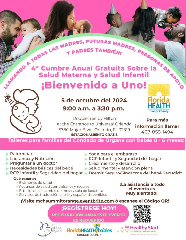 Orlando, Fla. – The Florida Department of Health in Orange County (DOH-Orange) invites expectant mothers and parents of infants up to one year old to attend the free Maternal Child Health Summit on Saturday, October 5, 2024.